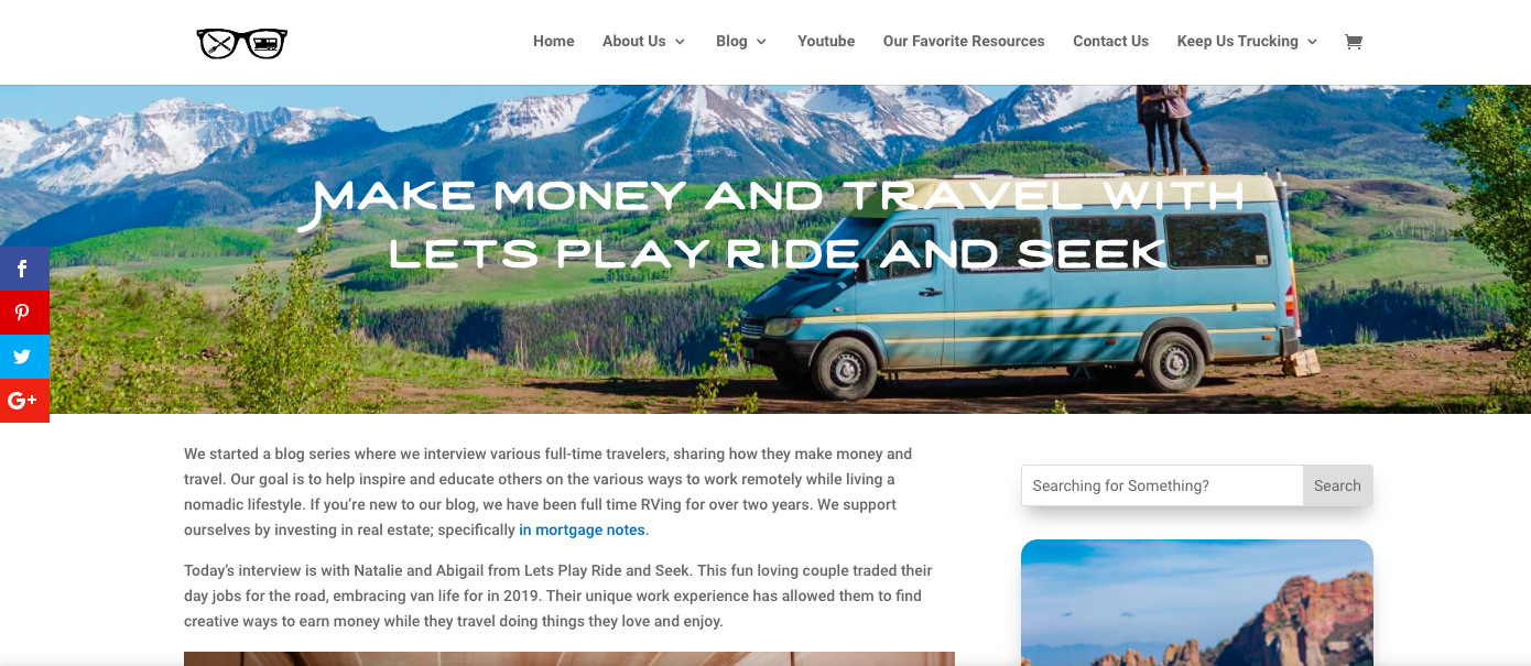 “We started a blog series where we interview various full-time travelers, sharing how they make money and travel. Our goal is to help inspire and educate others on the various ways to work remotely while living a nomadic lifestyle. If you’re new to our blog, we have been full time RVing for over two years. We support ourselves by investing in real estate; specifically in mortgage notes.